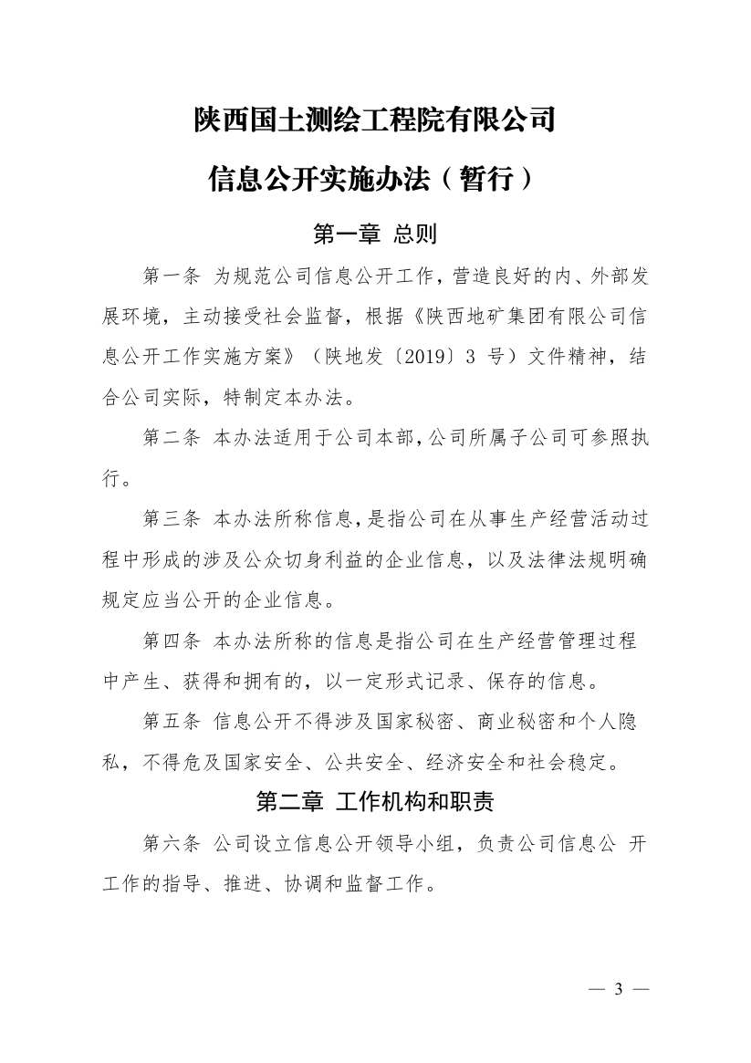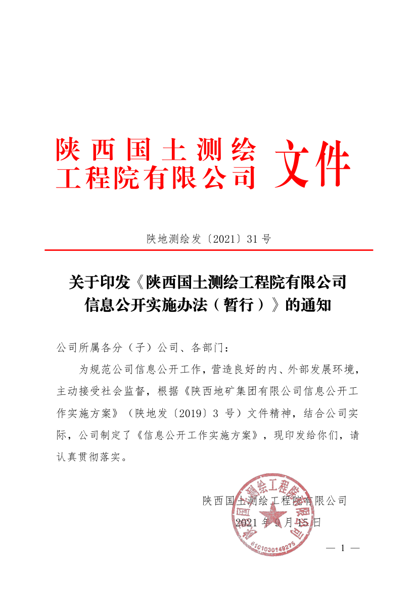 关于印发《陕西国土测绘工程院有限公司信息公开实施办法(暂行)》的通知