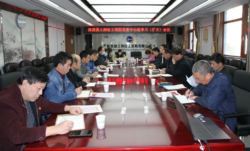 10月10日上午,陕西国土测绘工程院有限公司召开党委理论学习中心组学习(扩大)会议,集体学习习近平总书记给山东省地矿局第六地质大队全体地质工作者的回信精神,公司党委书记冯永强主持会议,全体班子成员、各支部书记、支部委员及部分中层干部20余人参加学习。