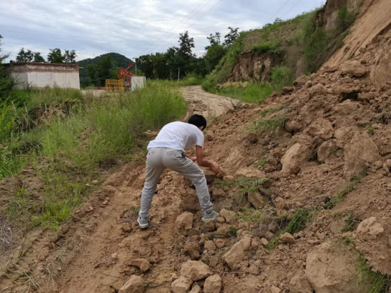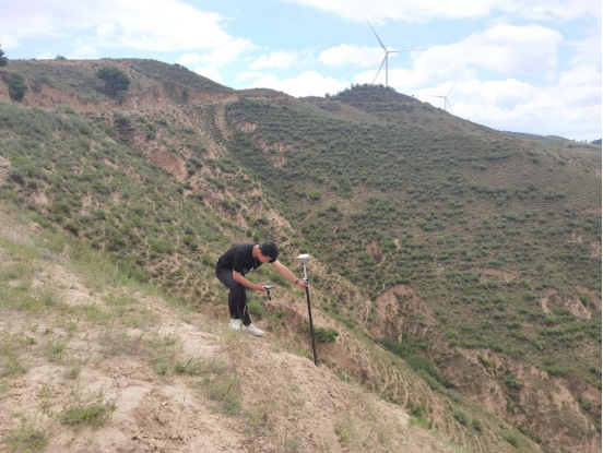 子长市是典型的黄土高原,这个季节,一刮大风就得下暴雨。“下雨不上山”是当地老百姓常年劳作总结出的经验,因为都是土路,经过泥水冲刷,就会沟壑复杂、湿滑难行。但这些都阻挡不了田静、赵博琪坚定的步伐。身披雨衣,踩过泥泞,他们滑倒过、淋透过,甚至有时候得手脚并用通过泥坑,但他们还是会克服困难继续前进,只是怕耽误项目进度。大家担心安全劝他们下雨就别去了,他们说:“车上不去,我们还有俩条腿,年轻人嘛,吃点苦没啥,我们肯定会注意安全,确保按时完成任务”。他们扛着测量仪器,一步一步向山上走去。